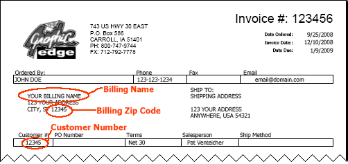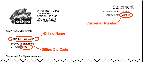 Electronic Billing is a free service from The Graphic Edge that allows you to receive statements and invoices online instead of on paper. Using electronic billing is more convenient and saves you money. Reducing printing and mailing expenses helps us keep prices lower for you, and using less paper is good for the environment at the same time! To get started, simply sign in by providing the information below from a current statement or invoice. The information required in order to sign in can be found on the top of either an invoice or statement from The Graphic Edge, in the locations shown below.